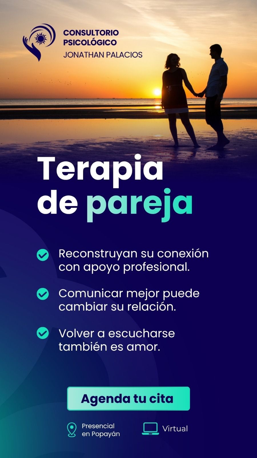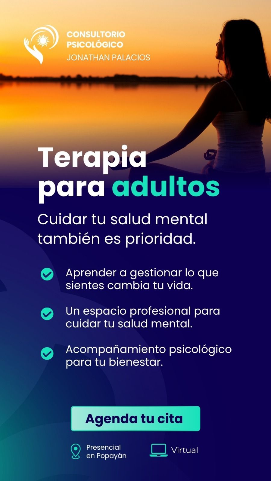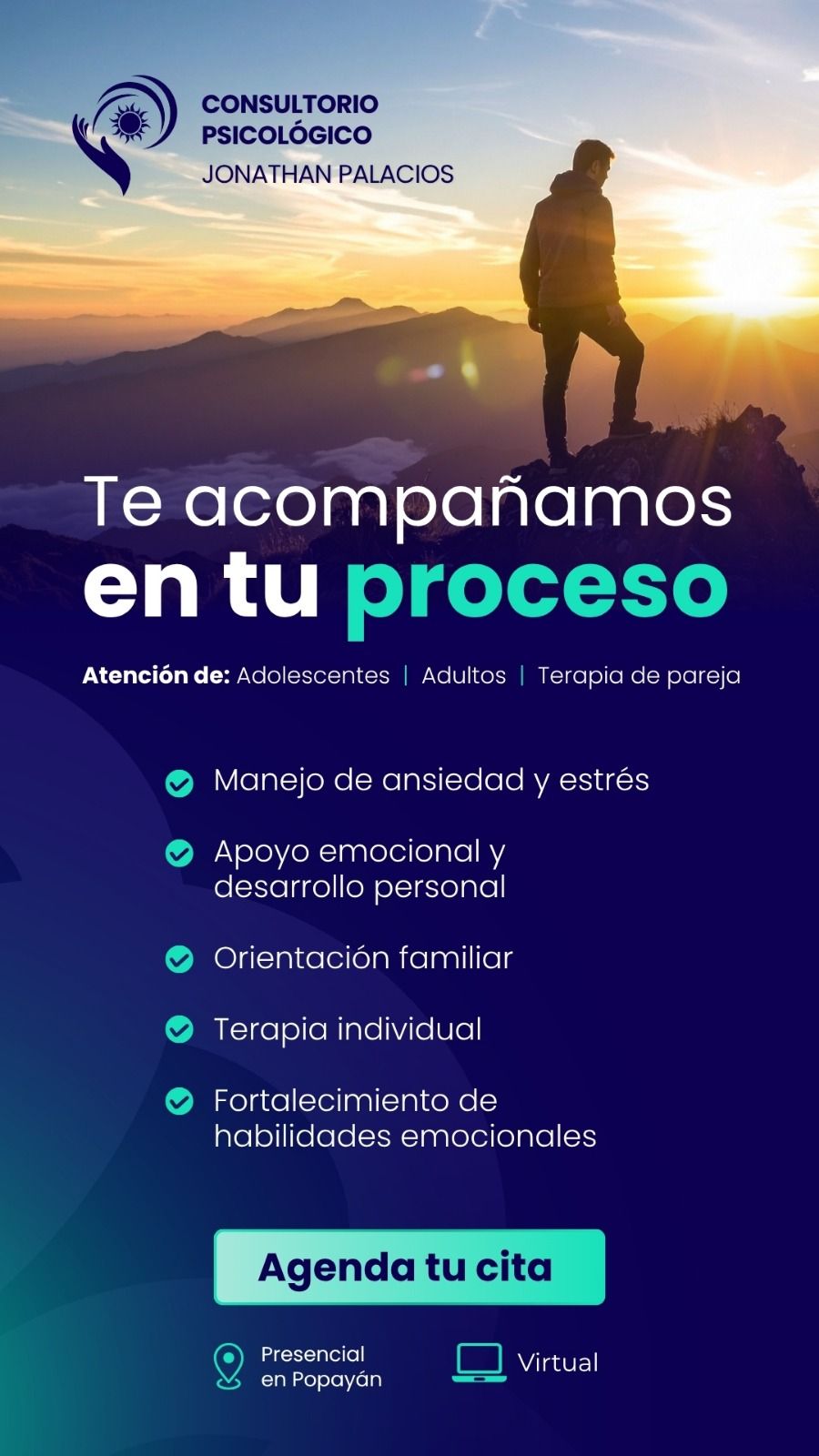 Ofrezco atención presencial en Popayán y modalidad online para personas en cualquier parte de Colombia.